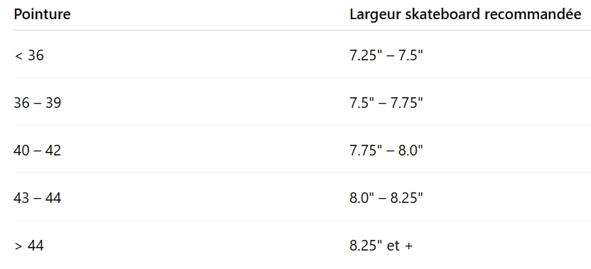 La plupart des adultes optent pour une largeur entre 8.0" et 8.25".