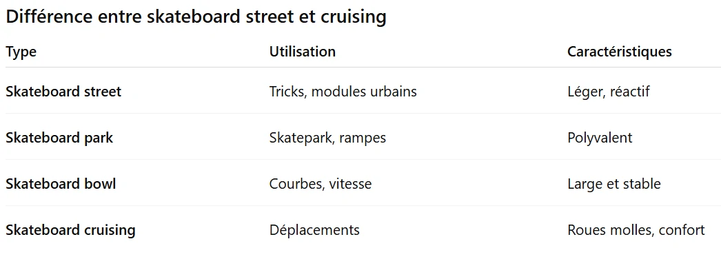 Différence entre skateboard street et cruising